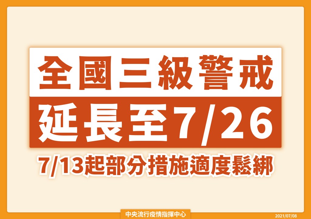 2021.07.09【元氣gogo 編輯部/整理報導】全國3級警戒延長至7月26日,7月13日起部分措施適度鬆綁。蔡英文總統也公開表示,期盼7月底前國人新冠疫苗接種率可以達到20%至25%之間。