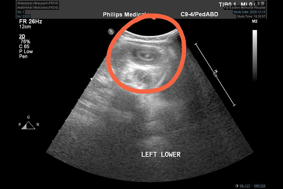 腸套疊 ( Intussusception ) 是小兒專科常見的腹部急症之一。亞東醫院小兒外科許琪琪醫師表示,幼兒型的腸套疊多為迴腸套入結腸型。腸套疊時的腸子像是天文望遠鏡收起來一樣,近端腸子套入遠端,造成腸子的阻塞。